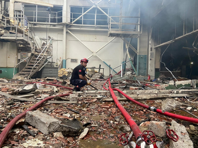 Sakarya Büyükşehir Belediyesi İtfaiye Daire Başkanlığı ekiplerine destek veren Sakarya Arama Kurtarma (SAKE) ekiplerinin de fabrika içerisinde sürdürdükleri çalışmalar görüntülendi.