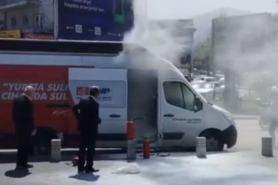 Cumhuriyet Halk Partisi Bursa İl Başkanlığı'na ait seçim aracı, kent merkezinde alevlere teslim oldu.
