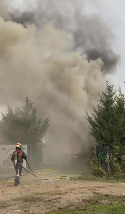 Alevler kısa sürede büyürken, olay yerine giden itfaiye ekipleri yangını bir saatte söndürdü, çiftlikteki atlar ve kanatlı hayvanlar telef olmaktan kurtarıldı.