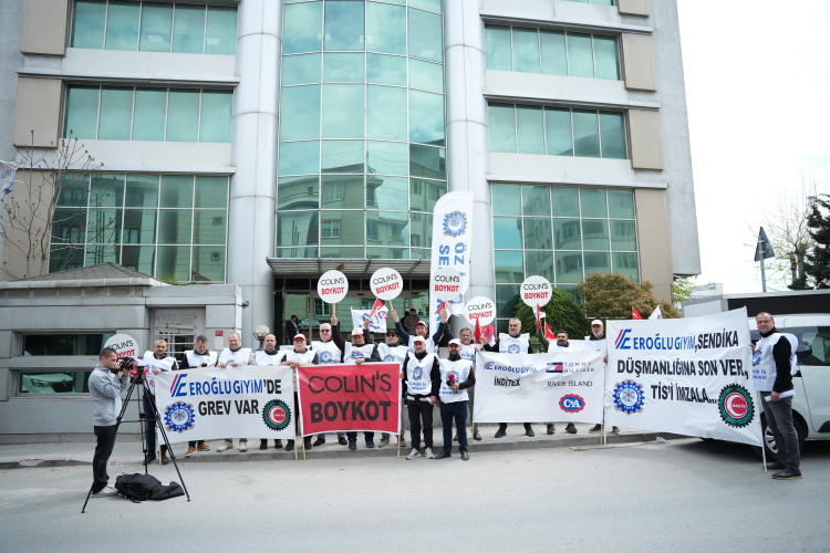 İstanbul Avcılar'da bulunan Colins Eroğlu Moda Tekstil Sanayi ve Ticaret A.Ş. İstanbul Fabrikası çalışanları ‘toplu iş sözleşmelerinin yapılamaması ve sürecin işverenin uzlaşmaz tavrı' nedeniyle uzaması iddiasıyla greve başladı. Sendika üyeleri fabrika önünde taşıdıkları dövizlerle bugün basın açıklaması gerçekleştirdi.