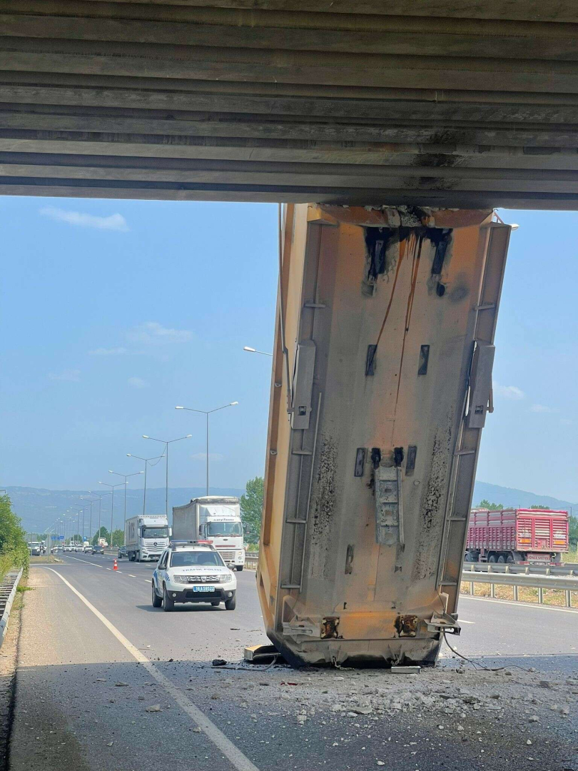 Kaza, Bursa-Ankara yolu Kulaca kavşağında meydana geldi. Edinilen bilgiye göre, Ankara istikametinden gelip Bursa istikametine seyir halinde olan Mehmet K. (45) yönetimindeki 16 NIH 11 plakalı kamyonun damperi açık unutulunca, kamyonun kasası köprülü kavşağa çarptı. Çarpmanın şiddetiyle kasa köprülü kavşağa asılı kalıp kamyondan koparken, kontrolden çıkan kamyon ise bariyerleri aşarak karşı şeride geçip şarampole uçtu.