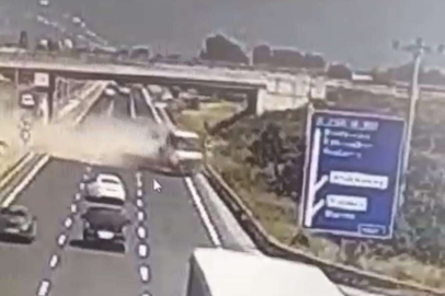 Öte yandan, kaza anı bir iş yerinin güvenlik kamerasına saniye saniye yansıdı. Kamyonun açık kalan damperinin çarptığı üst geçitte sıkıştığı ve kamyonun bariyerleri aşıp karşı yönden şarampole uçtuğu, karşı yönden gelen araçların zorlukla durduğu anlar yer aldı.