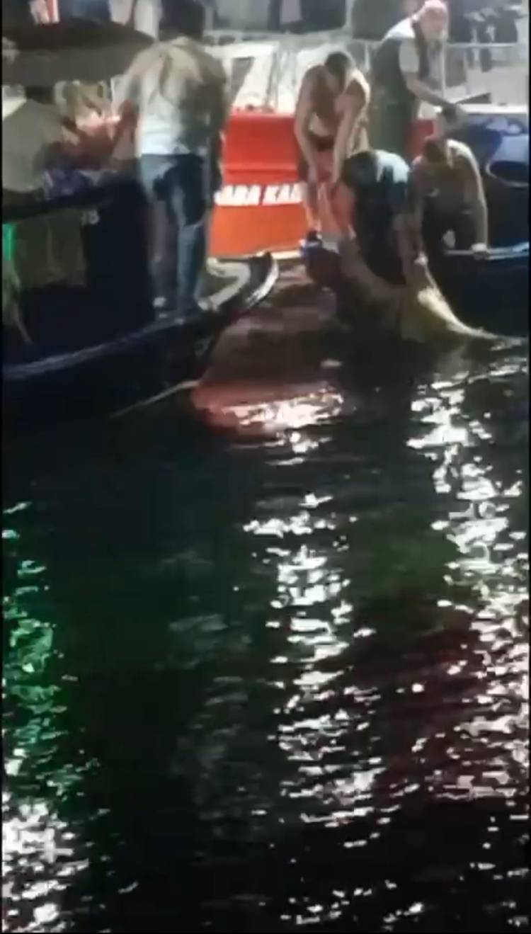 Bursa'nın Gemlik ilçesinde alkollü bir şahıs denize girdi. Denizde boğulma tehlikesi yaşayan şahsı balıkçılar kurtardı. O anlar amatör kamera ile kaydedildi.