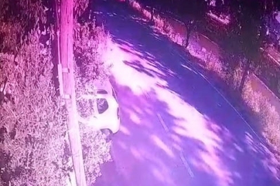 Bursa'da bayram ziyaretine giden bir otomobil sürücüsü, direksiyon hakimiyetini kaybederek dereye uçtu. O anlar saniye saniye güvenlik kamerasına yansıdı.