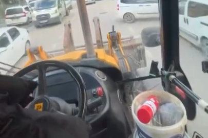 Bursa'da iddiaya göre ehliyeti olmayan bir genç, sokak aralarında iş makinesi sürdü.