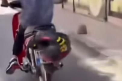 Motosiklet sürücüsü egzozu bağırtarak ilerlerken çevredekiler ise olan bitene anlam veremedi.
