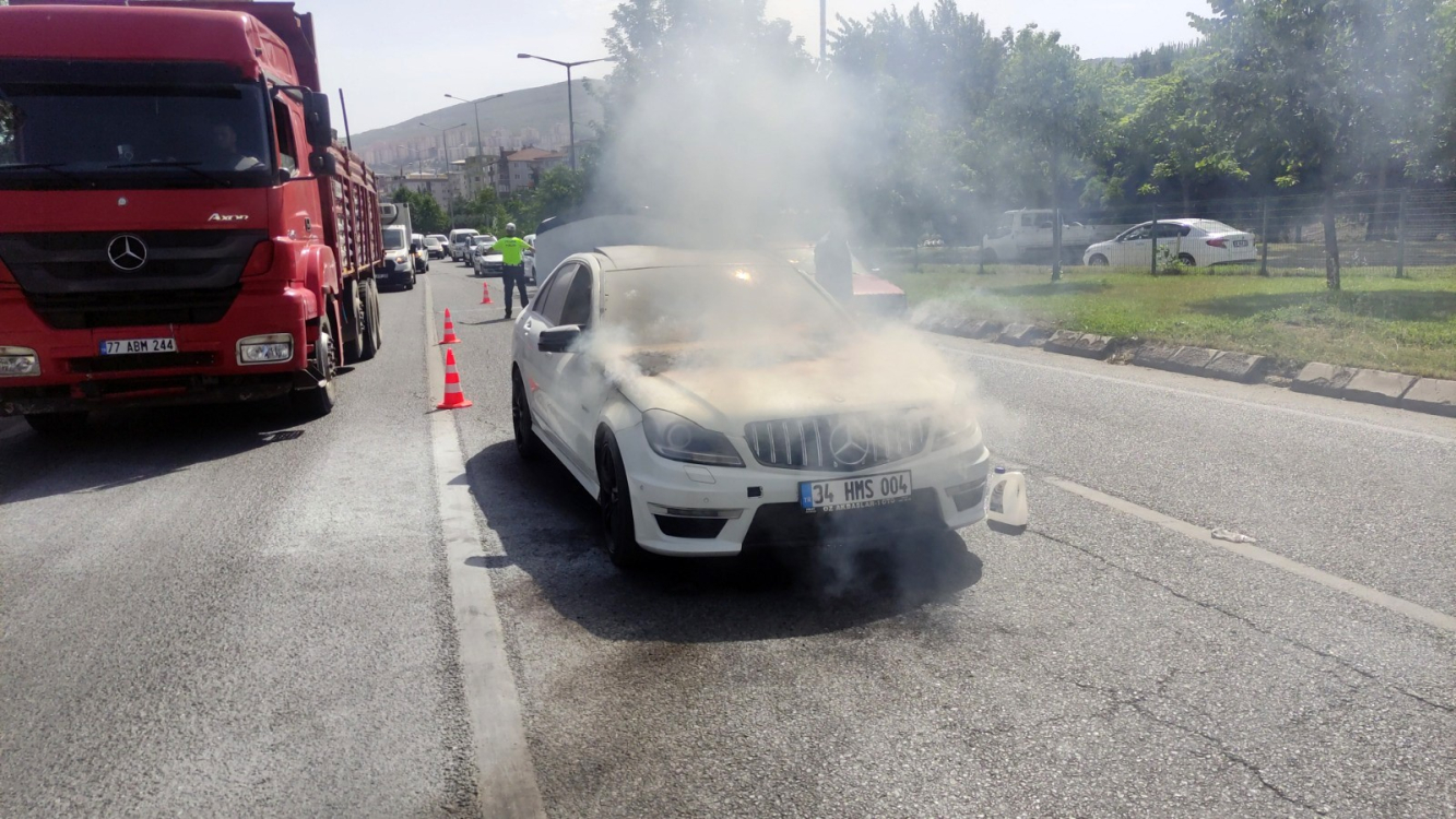 Seyir halinde olan lüks otomobilin motor bölümünden dumanlar yükselmeye başladı. Araçtan dumanlar çıktığını gören sürücü, trafik lambalarında otomobilden indi. Çevrede bulunan vatandaşlar yangın tüpleri ile müdahale etti. İhbar üzerine olay yerine itfaiye ekipleri sevk edildi. Yangını itfaiye ekiplerinin müdahalesi ile kısa sürede kontrol altına alındı. Araç sürücüsü Mehmet Kaya, aracın elektrik aksamı için 45 bin TL masraf yaptığını İstanbul’a dönerken aracın yandığını ifade etti. Olayda otomobil büyük çapta maddi hasar meydana gelirken, polis ekipleri olayla ilgili soruşturma başlattı.