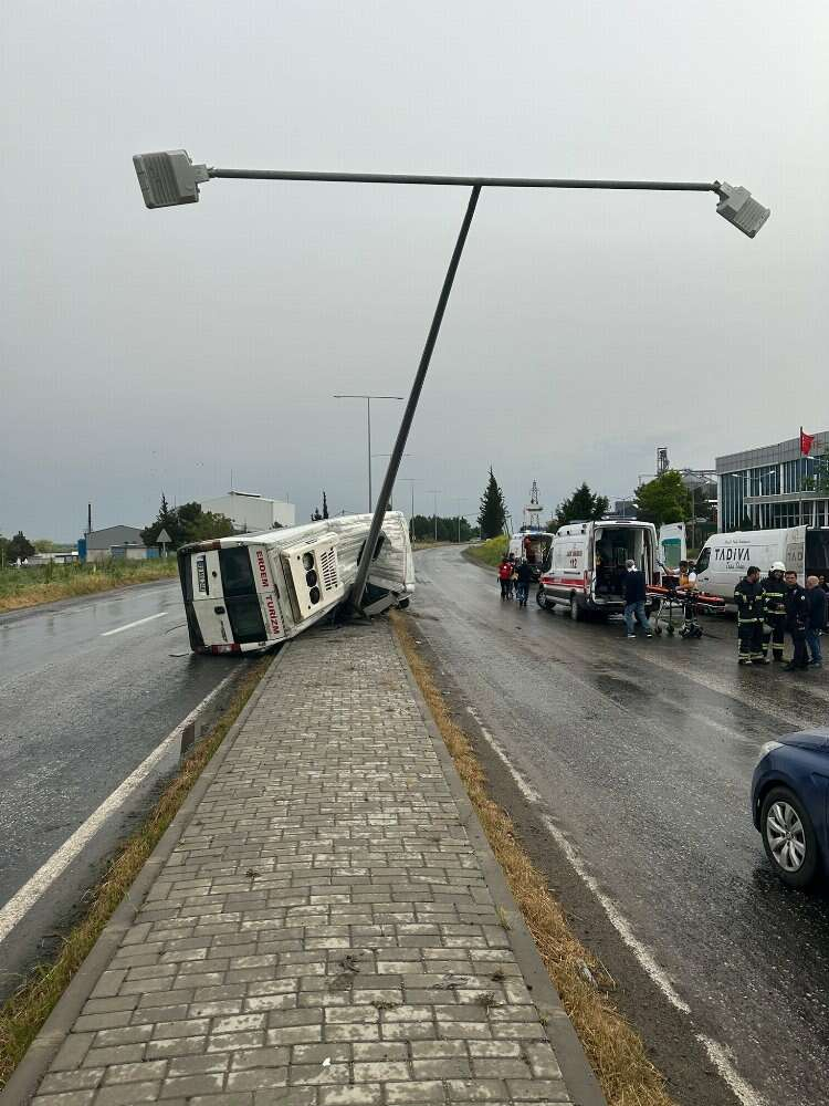 Tekirdağ'ın Muratlı ilçesinde fabrika servisi devrildi, 7 kişi yaralandı.