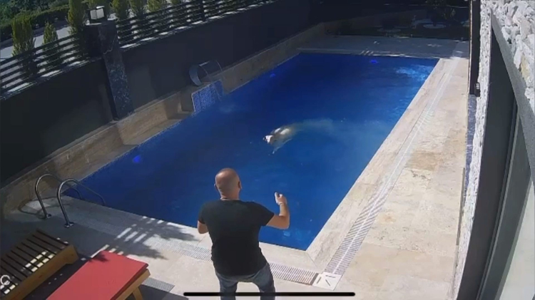 Bursa'nın İnegöl ilçesinde firar eden kurbanlık koç, havuza atladı. O anlar güvenlik kamerasına yansıdı.