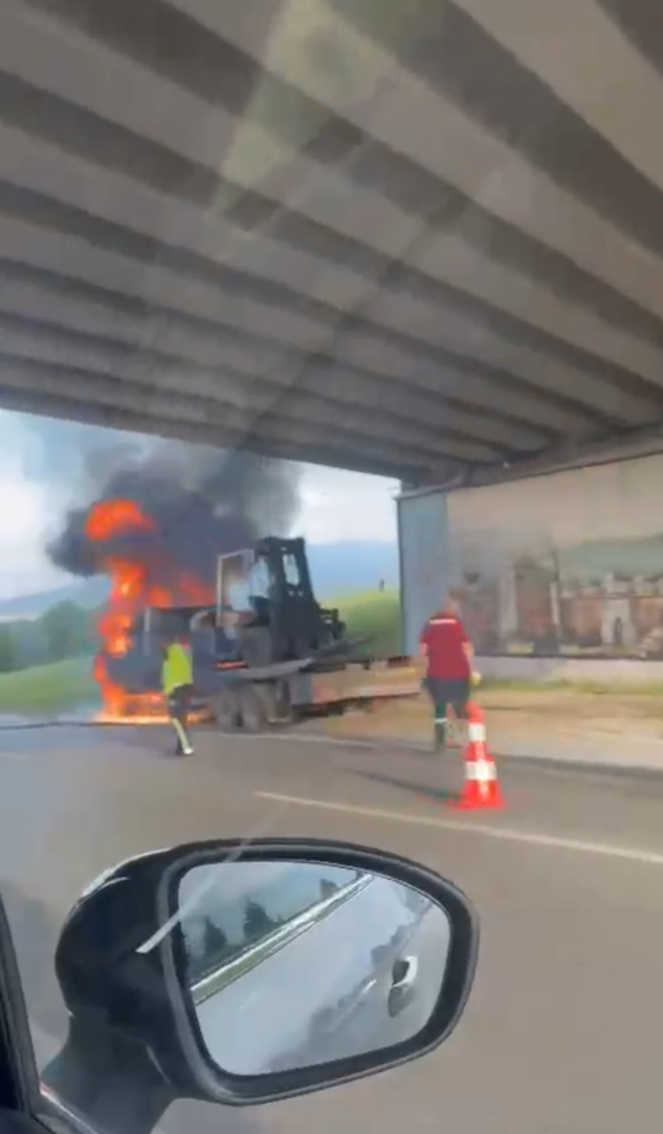 Olay, merkez Nilüfer ilçesi İzmir Yolu Caddesi Görükle mevkiinde meydana geldi. Sürücüsü ve plakası henüz öğrenilemeyen forklift yüklü kamyon aniden yanmaya başladı. Kısa sürede kamyonu saran alevleri gören vatandaşlar, durumu 112 Acil Servis Merkezi'ne bildirdi. İhbar üzerine olay yerine polis, sağlık ve itfaiye ekipleri sevk edildi. Olay yerine gelen polis ekipleri çevrede güvenlik önlemi alırken, itfaiye ekipleri yangına müdahale etti. Yangın itfaiye ekiplerinin müdahalesiyle kontrol altına alınarak söndürüldü. Kamyonun kullanılamaz hale geldiği yangın, amatör kameraya yansıdı.