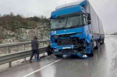 Bursa’da kayganlaşan yolda freni boşalan tır, ambulans ve 3 araca çarparken, kaza maddi hasarla atlatıldı.
