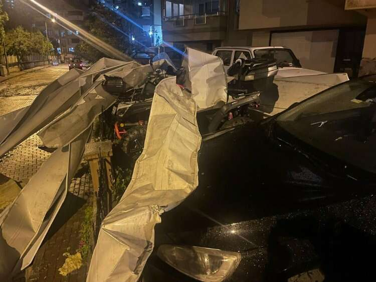 Gemlik’te okulun çatısı araçların üzerine uçtu