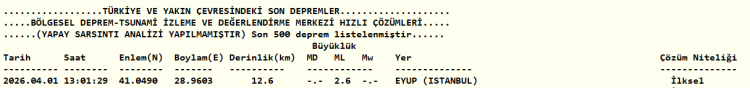 Kandilli Rasathanesi verilerine bakıldığında; İstanbul’un Eyüp ilçesinde 2.6 büyüklüğünde bir deprem meydana geldi. Sarsıntının derinliği 12.6 kilometre olarak açıklandı.