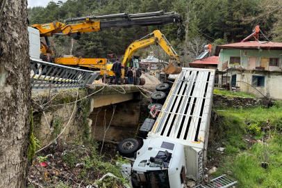 Adana'da kontrolden çıkan kamyonun köprüden düştüğü kazada sürücü hafif yaralandı.