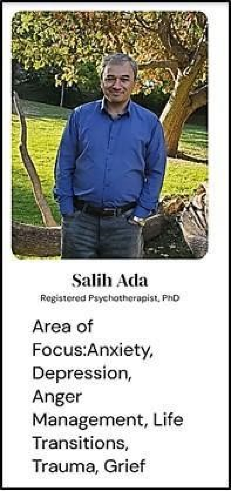 Kaynaklar, Karaata’nın "Salih Ada" adıyla "Qualia Counselling Services" isimli bir şirkette psikoterapist olarak çalıştığını, anksiyete, depresyon ve öfke kontrolü alanlarında hizmet verdiğini aktardı. Söz konusu kişinin, "Waterloo The Boardwalk Suite 406" adresinde faaliyet yürüttüğü kaydedildi.
