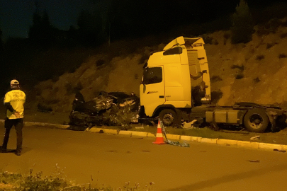 Karşı şeride geçen tır otomobili biçti: 1 ölü