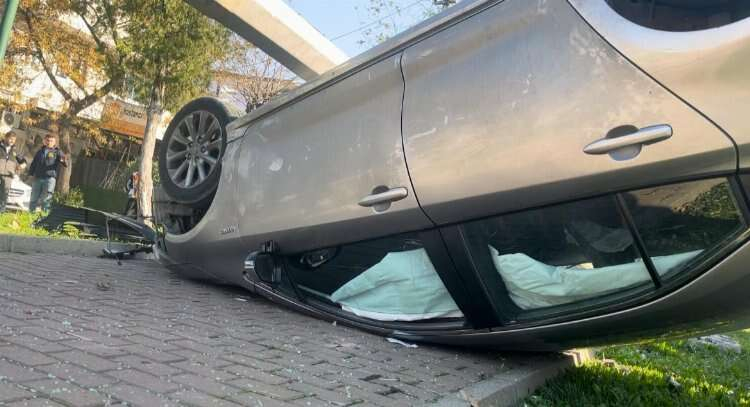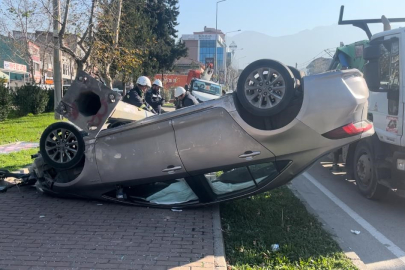 Merkez, Osmangazi ilçesi İzmir Yolu Caddesi üzerinde 34 ENA 109 plakalı Muhammet D. idaresindeki otomobil, seyir halindeyken kontrolden çıktı. Kaldırıma çarptıktan sonra direğe hızla vuran otomobil ters döndü.