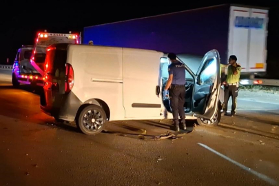 Bursa-İzmir Otoyolu'nda hafif ticari araç, sürücüsünün kontrolünden çıkarak bariyerlere çarptı.