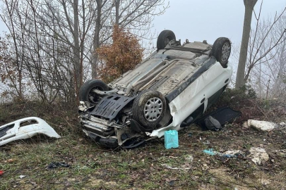 Bursa'nın İnegöl ilçesinde, sis nedeniyle kontrolden çıkan otomobilin takla attığı kazada, sürücü yaralandı.