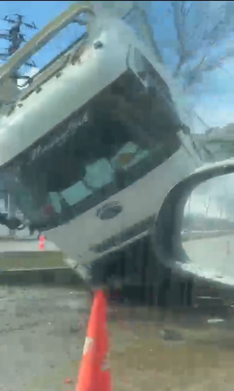 Kontrolden çıkan tır refüje saplandı, sürücü yaralandı