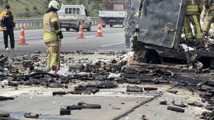 Kuzey Marmara Otoyolu’nda kamyon alev aldı: Spreyler patladı, trafik kilitlendi