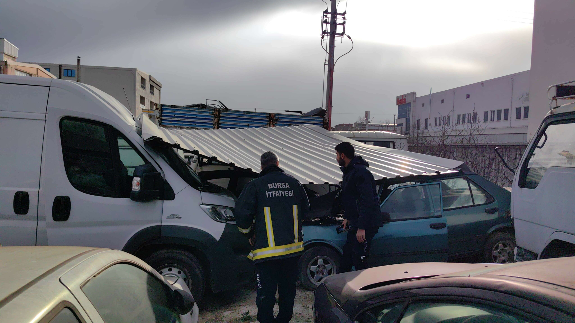 Olay gece saatlerinde İnegöl ilçesi Süleymaniye Mahallesi Özoluk Sokak’ta meydana geldi. Gece saatlerinde etkili olan lodos nedeniyle inşaat firmasına ait saç çatı yerinden çıkıp uçtu. 5 metre uzunluğundaki çatı, fabrikanın yanındaki Yediemin Otoparkında bulunan araçların üzerine düştü. Çatının üzerine düştüğü 3 araçta hasar meydana geldi.