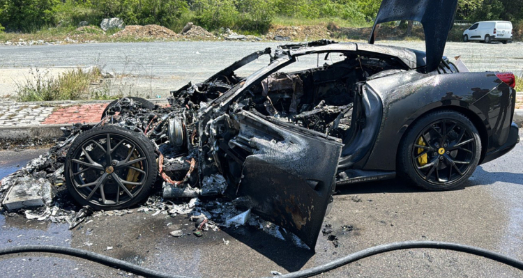 ihbar üzerine olay yerine gelen polis ekipleri çevrede güvenlik önlemi alırken, itfaiye ekipleri ise yangını söndürmüştü. Olayda ölen ya da yaralanan olmazken lüks otomobil küle dönmüştü. Aracın alev alev yandığı anlar ise cep telefonu kamerasına yansımıştı.