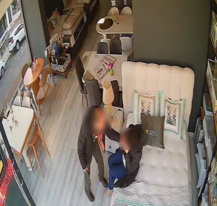 Samsun Atakum'da bir şahıs, çalıştığı mobilya mağazasında eşini darp etti. Aralık 2025'te yaşanan olay güvenlik kamerasına yansıdı. Çift şikayetçi olmadı.