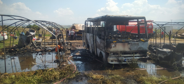 Edinilen bilgiye göre, Bursa'nın Yenişehir ilçesine bağlı Çeltikçi Mahalle kırsalında kurulan mevsimlik işçilerin yaşadığı çadırlarda henüz bilinmeyen sebeple yangın çıktı. Kısa sürede tutuşan çadırlara Bursa Büyükşehir Belediye itfaiye ekipleri müdahale etti. Yangın kısa sürede kontrol altına alınarak söndürüldü. İşçileri tarlaya götüren bir midibüs ve 3 çadır küle dönerken, bazı çadırlar da hasar aldı. Çadır içindeki beyaz eşyalar da yandı.