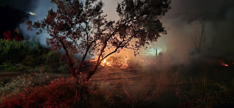Bursa’nın Mudanya ilçesine bağlı Göynüklü Mahallesi'nde, zeytinlik alanda bulunan bağ evi alevlere teslim oldu.