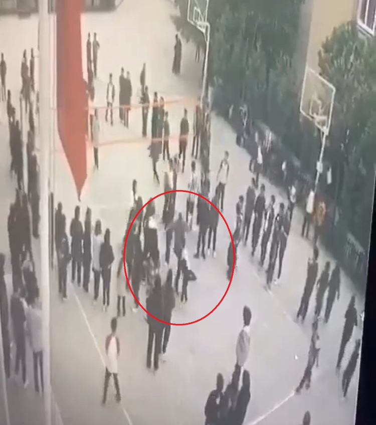 Güvenlik kamerası kayıtlarında, öğretmenin koşarak öğrencisine tekme attığı, ardından tokatladığı görüldü. Aldığı darbelerle yere düşen öğrenci, daha sonra aksayarak arkadaşlarının yanına gitti.