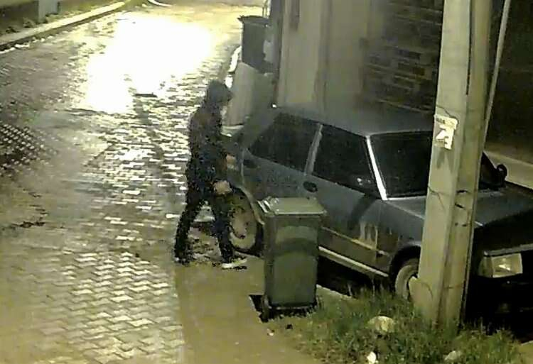 İnegöl Cumhuriyet Mahallesinde meydana geldi olayda sokağa yürüyerek giren şüpheli, park halindeki 16 ANH 999 plakalı aracın kapısını zorlayarak açtı. Araçtaki teyp ve malzemeleri alan şahıs, sokaktaki apartmanın girişine malzemeleri sakladı. 5 dakika sonra başka bir araçla olay yerine geldi. Geldiği apartmanın girişine sakladığı çaldığı malzemeleri araca koyarak kayıplara karıştı.