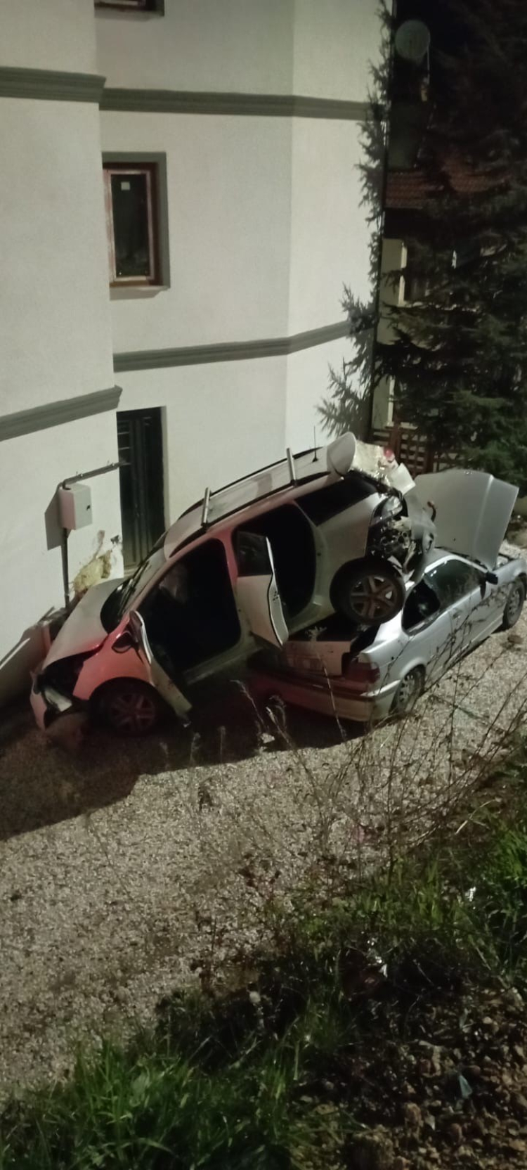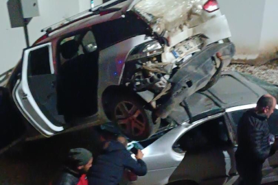 Otomobil apartman bahçesindeki başka bir otomobilin üzerine uçtu
