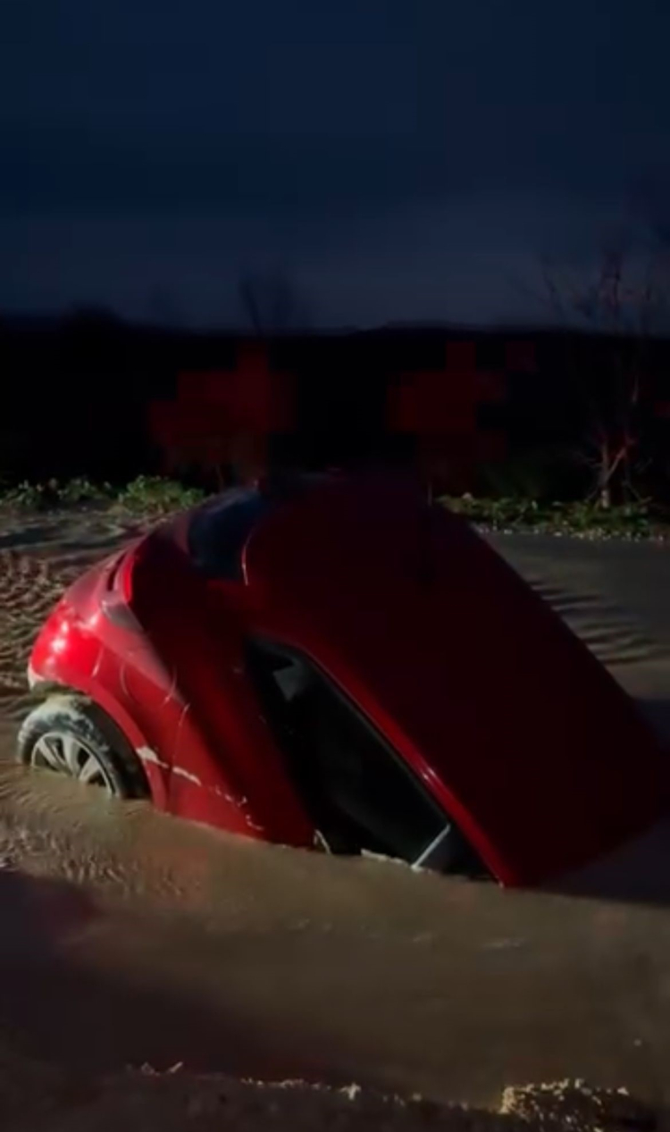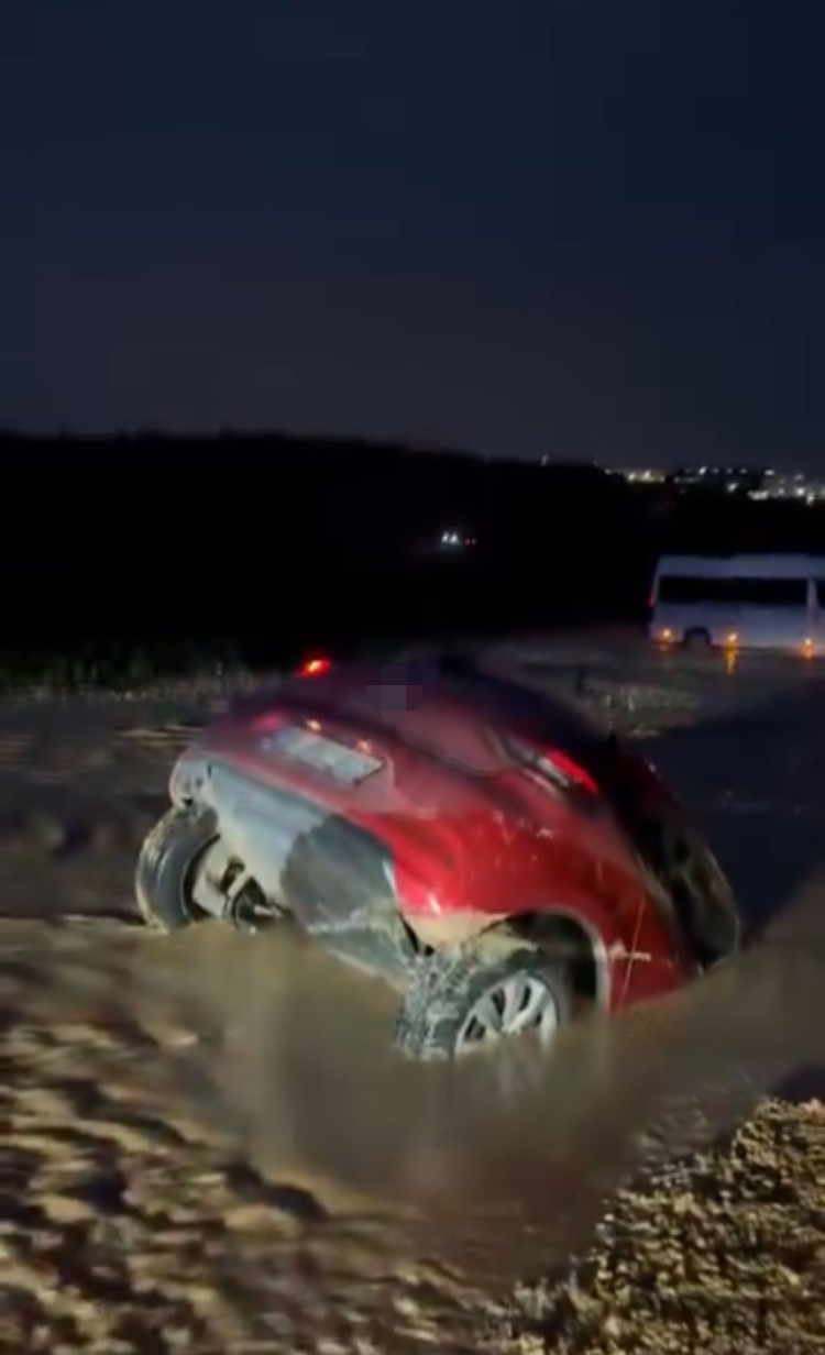 Bursa Nilüfer'de yol çalışması nedeniyle bir otomobil çamura saplandı ve yarıya kadar battı. Sürücü son anda kurtulurken, araçta maddi hasar oluştu. Ekipler güvenlik önlemleri alıp aracı çıkarmak için çalışma başlattı.
