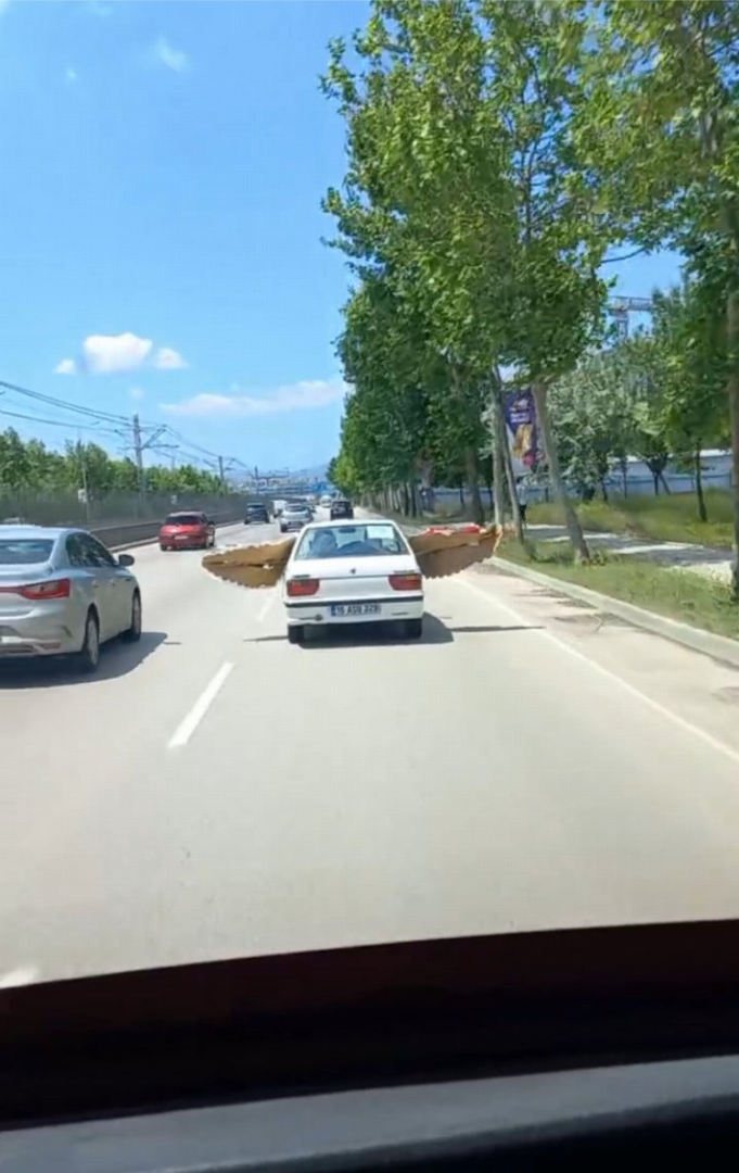 Bursa'da otomobille çelenk taşıyan sürücü kameraya yakalandı. Gündüz vakti otomobilin bir camından diğer camına çıkardığı çelenk ile şehir turu atan şahıs, trafikteki diğer sürücülerin güvenliğini hiçe saydı.