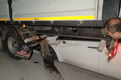 Otomobil tırın altına girdi