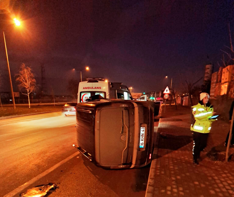 Edinilen bilgiye göre, kaza saat 07.30 sıralarında İnegöl-Alanyurt yolu üzerinde meydana geldi. Enes Y. (18) yönetimindeki 16 KHN 43 plakalı hafif ticari araç, önünde seyreden Cevdet A. idaresindeki 16 ANN 569 plakalı otomobile çarptı. Çarpmanın etkisiyle kontrolden çıkan hafif ticari araç devrildi. Kaza sonucu sürücü Enes Y. yaralandı. Yaralı kaza yerine sevk edilen ambulansla İnegöl Devlet Hastanesine kaldırıldı.