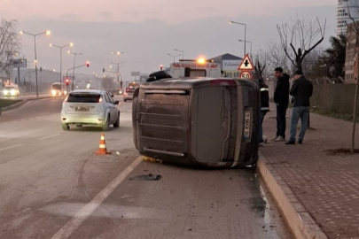 Otomobile çarpan hafif ticari araç devrildi sürücü yaralandı