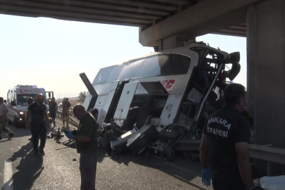 Ankara'nın Polatlı ilçesinde yolcu otobüsü köprünün ayağına saplanması sonucu meydana gelen trafik kazasında çok sayıda ölü ve yaralı var.