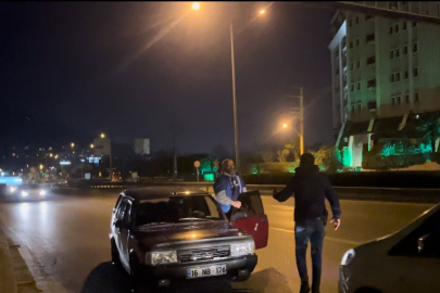 Merkez, Osmangazi ilçesi Santral Garaj Mahallesi üzerinde uygulama noktası kuran trafik polisleri, alkollü sürücülere geçit vermedi. Uygulama noktasını gören bir sürücü, denetime girmemek için geri manevra yapıp gaza sonuna kadar basıp kaçmaya çalıştı.