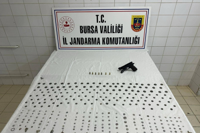 Bursa İl Jandarma Komutanlığı ekipleri tarihi eser kaçakçılarını yakaladı. Operasyonda Roma dönemine ait 297 adet sikke, 30 adet tarihi obje, ruhsatsız tabanca ve fişek ele geçirildi.
