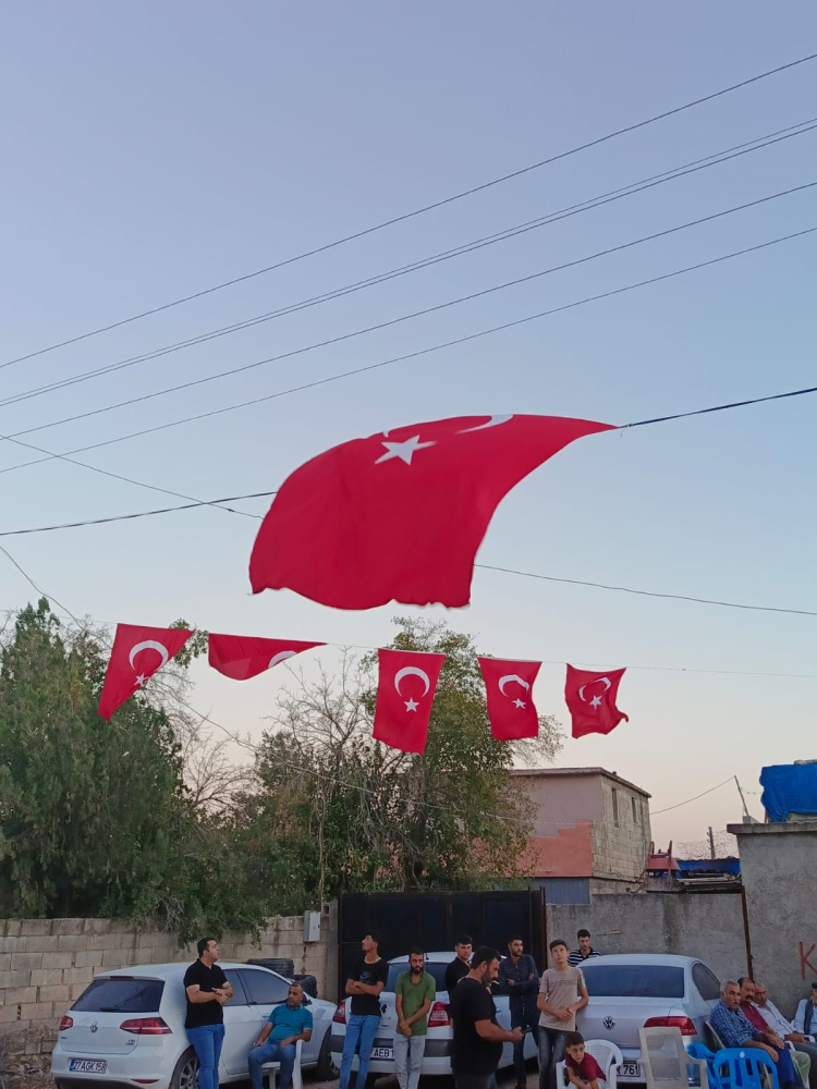 Uzman Çavuş Hasan Arslan'ın Gaziantep'in Karkamış ilçesi kırsal Eceler Mahallesi'ndeki babaevine Türk bayrakları asılırken, şehidin ailesi ve yakınları gözyaşlarına boğuldu.