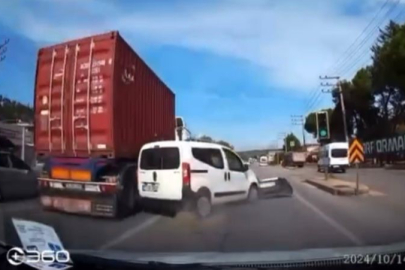 Bursa’da sola dönüş yapmak için anayolda şerit değiştiren hafif ticari araca tır çarptı. Kontrolden çıkan tır elektrik direğine çarpıp devrilirken, kameralara yansıyan kazada 2 kişi yaralandı.