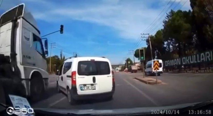 Kontrolden çıkan tır, elektrik direğine çarpfufj devrildi. Kaza anı kameraya yansırken, 2 sürücü de yaralandı. İhbar üzerine olay yerine gelen sağlık ekiplerince ilk müdahalesi yapılan yaralılar, bölgedeki hastanelere sevk edildi.