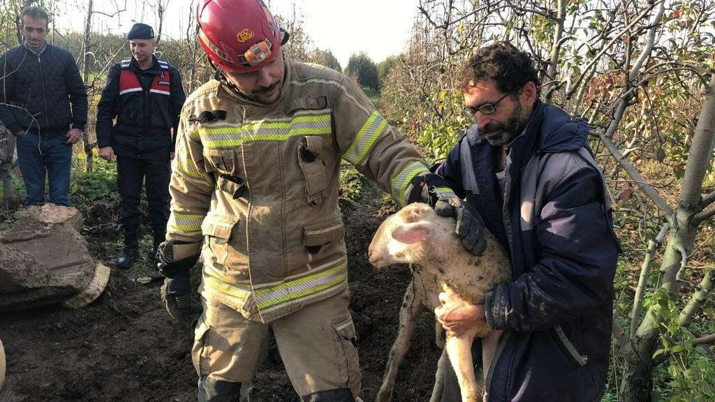 Ekiplere teşekkür den Ramazan Çakar, "Bir tane kuzumuz kaybettik. Her tarafı aradım bulamadım. Benim ufak çocuğum 'kuzu çukurun içinde' dedi. Ben hemen geldim, çıkartamadım. İtfaiyeye ulaştık yardımcı oldular" dedi.