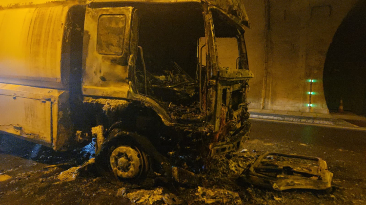 İstanbul-İzmir otoyolunda, Orhangazi Tüneli içinde su tankeri alev aldı. Sürücü canını zor kurtarırken, tanker kısa sürede küle döndü.