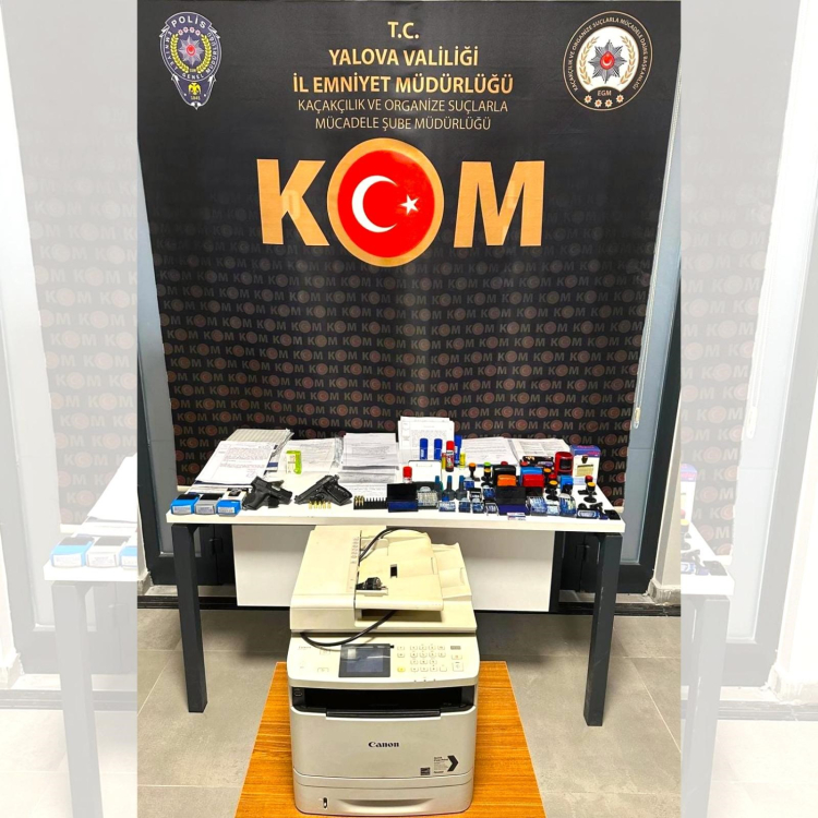 Alınan bilgiye göre, Yalova Emniyeti Kaçakçılık ve Organize Suçlarla Mücadele Şube Müdürlüğü ekipleri, Türkiye genelinde sahte belgelerle şirketleri ele geçirip gayrimenkullerini satan suç örgütüne yönelik operasyon gerçekleştirdi. Yalova merkezli operasyonda İstanbul ve Ordu illerinde toplam 18 adreste yapılan aramalarda 2 ruhsatsız tabanca ve 32 fişek, 8 gram esrar, 31 adet sahte resmi belge üretiminde kullanılan tarih, unvan ve mühür kaşeleri, 10 adet şirketlerin ele geçirilmesine yarayan sahte karar defteri ve noter evrakı, 41 adet mağdur şirketlere ait muhtelif sahte belge, 3 adet imza sirküleri, 15 adet cep telefonu, 23 adet muhtelif dijital materyal, 2 adet e-imza ve sahte belge üretiminde kullanılan yazıcı ele geçirildi. Operasyonda gözaltına alınan ve işlemleri sonrası adliyeye sevk edilen suç örgütü lideri N.U., E.A., M.A., Y.Ç., M.A., O.S., Y.M., A.K., V.D., Y.E., C.T.K., H.K. ve K.K. tutuklanarak cezaevine gönderildi. Örgüt üyelerinin yanında gizlenen ve 3 yıl 4 ay kesinleşmiş hapis cezası bulunan A.S. de operasyonda yakalandı.