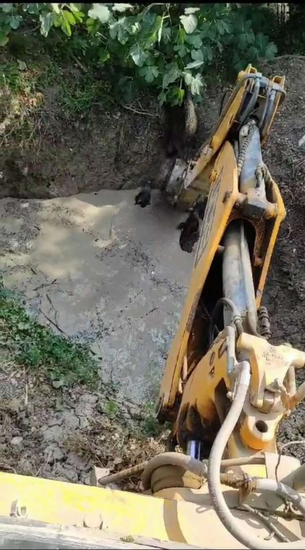 Sulama havuzuna düşen 3 domuz iş makinesi ile kurtarıldı