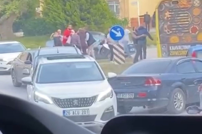 Bursa'da trafikte tartışan 2 sürücü, araçlardan inerek kavga etmeye başladı.