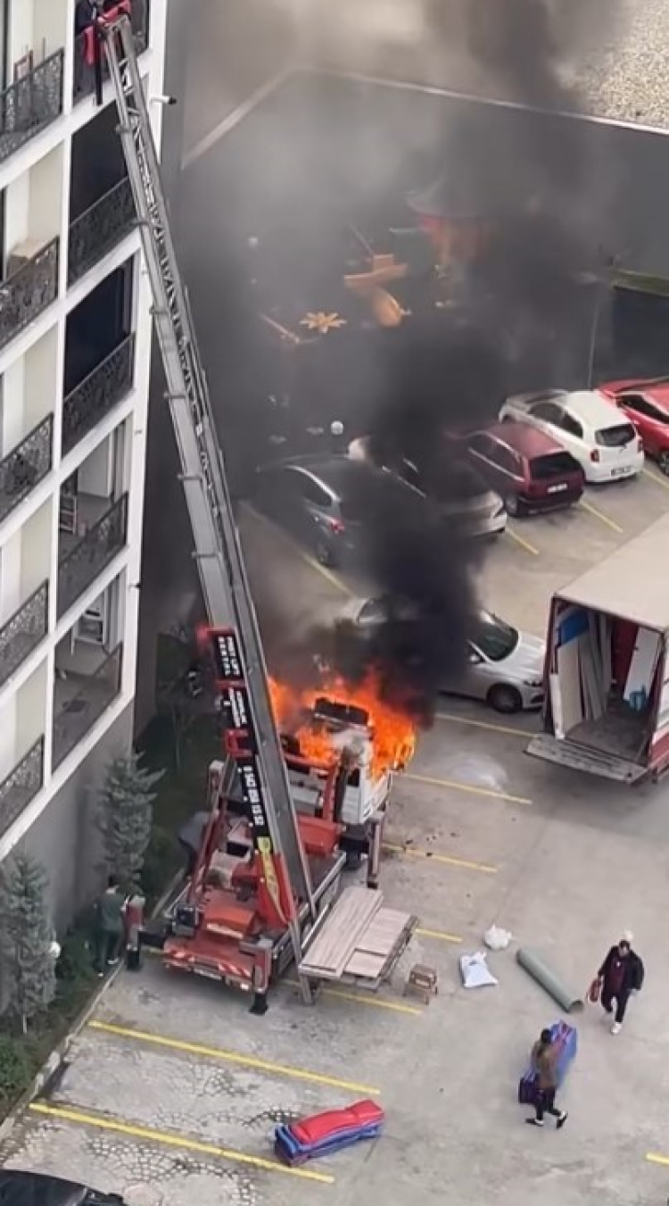 Bir ailenin eşyalarını 6. kattaki dairenin balkonuna çıkarmak için kullanılan eşya taşıma vincinin bağlı olduğu kamyonun kabin kısmında yangın çıktı. Olay kısa sürede site sakinleri arasında paniğe neden oldu. Site içerisinde yoğun duman oluştu. Alev alev yanan vinçli kamyona İlk müdahaleyi ellerinde su dolu damacanalarla çevredeki vatandaşlar yaptı, ardından itfaiye ekipleri yangını kontrol altına aldı. Olayda can kaybı yaşanmazken, kamyonun kabin kısmında maddi hasar meydana geldi. Yangının çıkış nedeni henüz netlik kazanmazken, olayla ilgili inceleme başlatıldı.